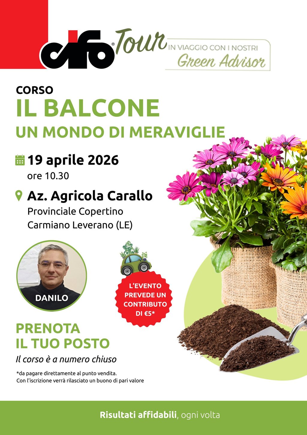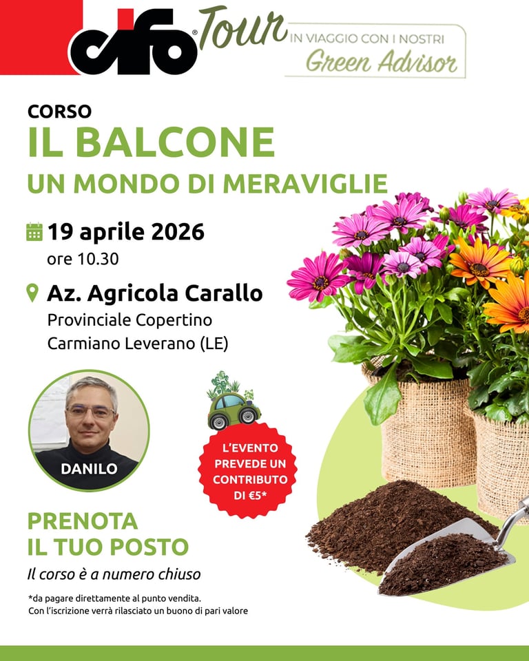 Vuoi trasformare il tuo balcone in uno spazio verde pieno di colori e profumi? Partecipa al nostro corso e scopri come creare il tuo piccolo angolo di natura anche con poco spazio.